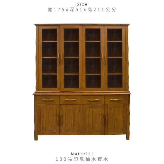 自然把手柚木玻璃書櫃